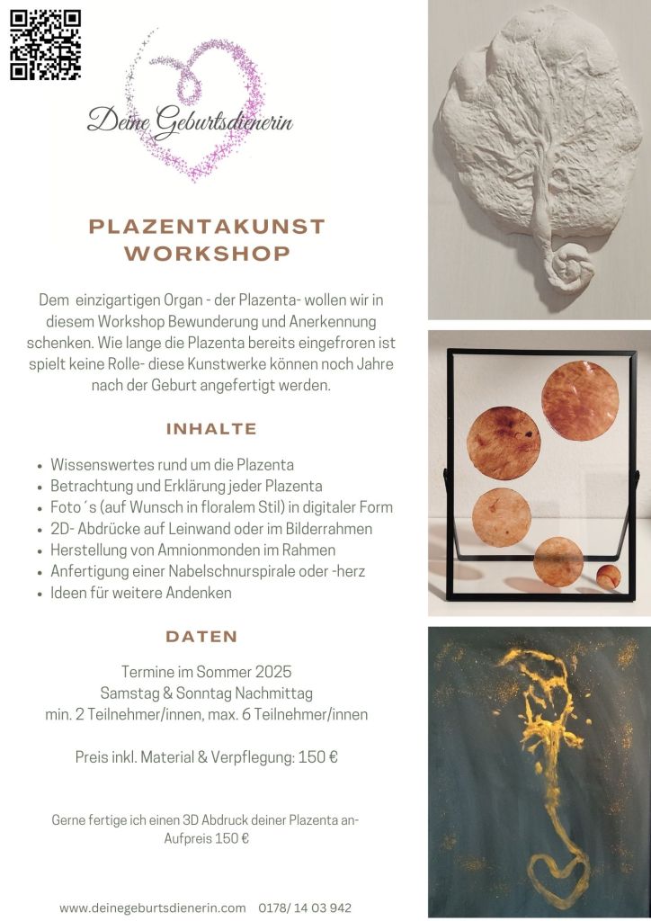 Gerne komme ich zu dir nach Hause oder ich hole die Plazenta bei Dir ab. Nach Rücksprache fertige ich in deinen Lieblingsfarben ein oder mehrere Abdrücke auf Leinwand an.